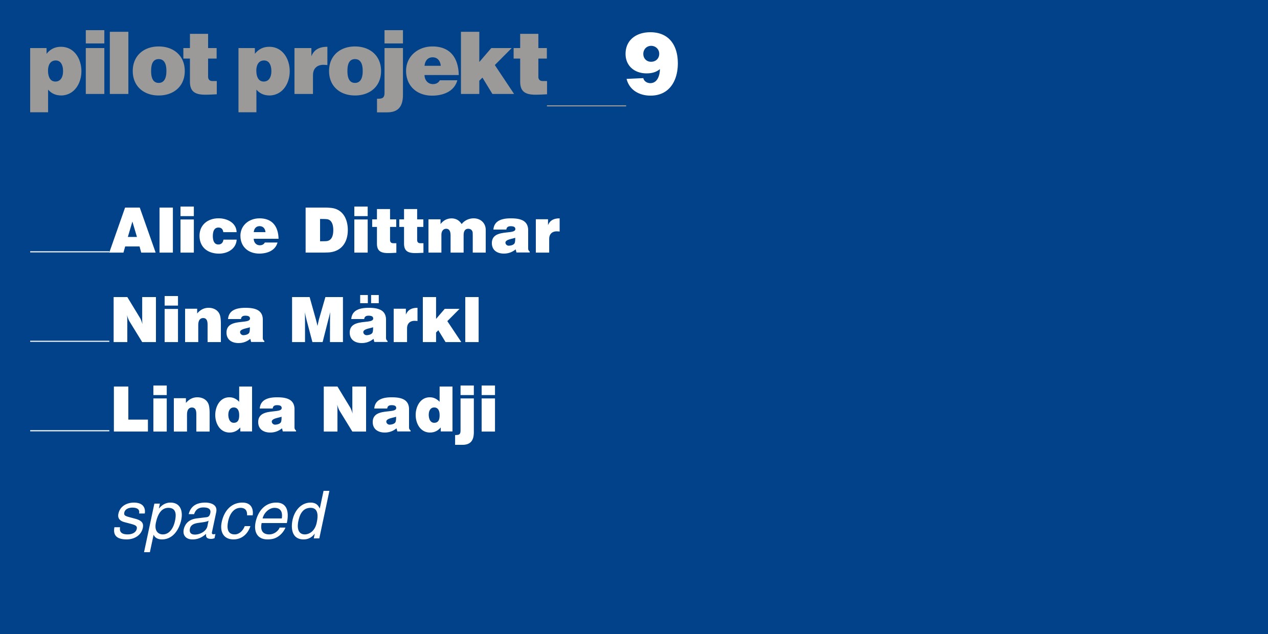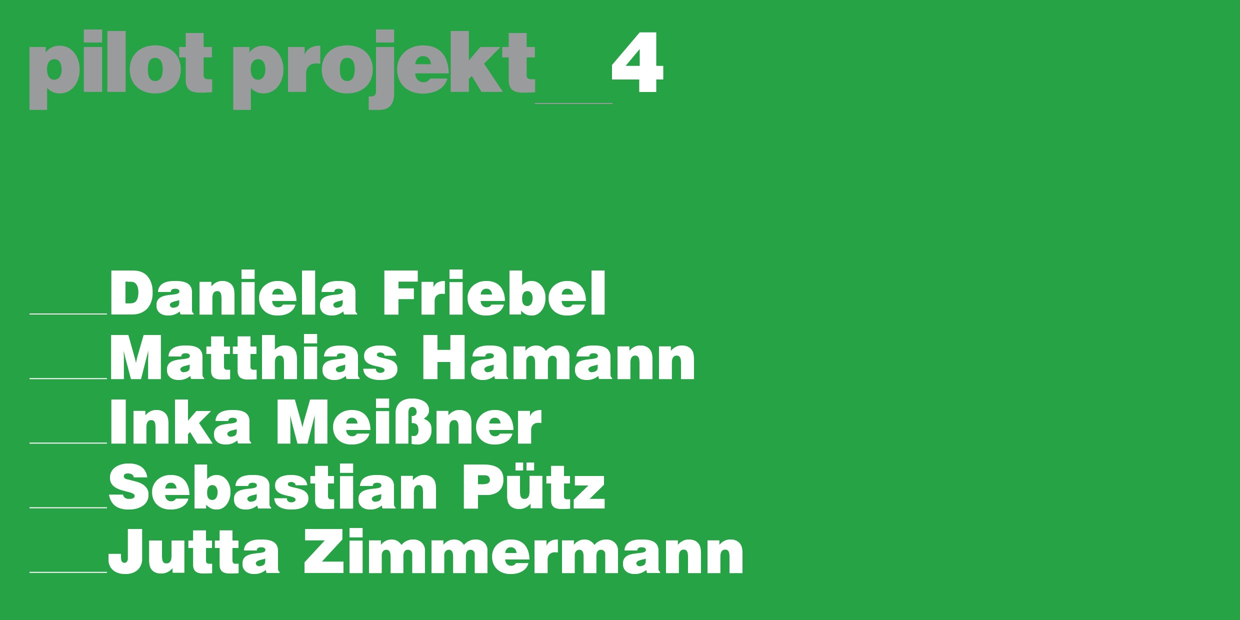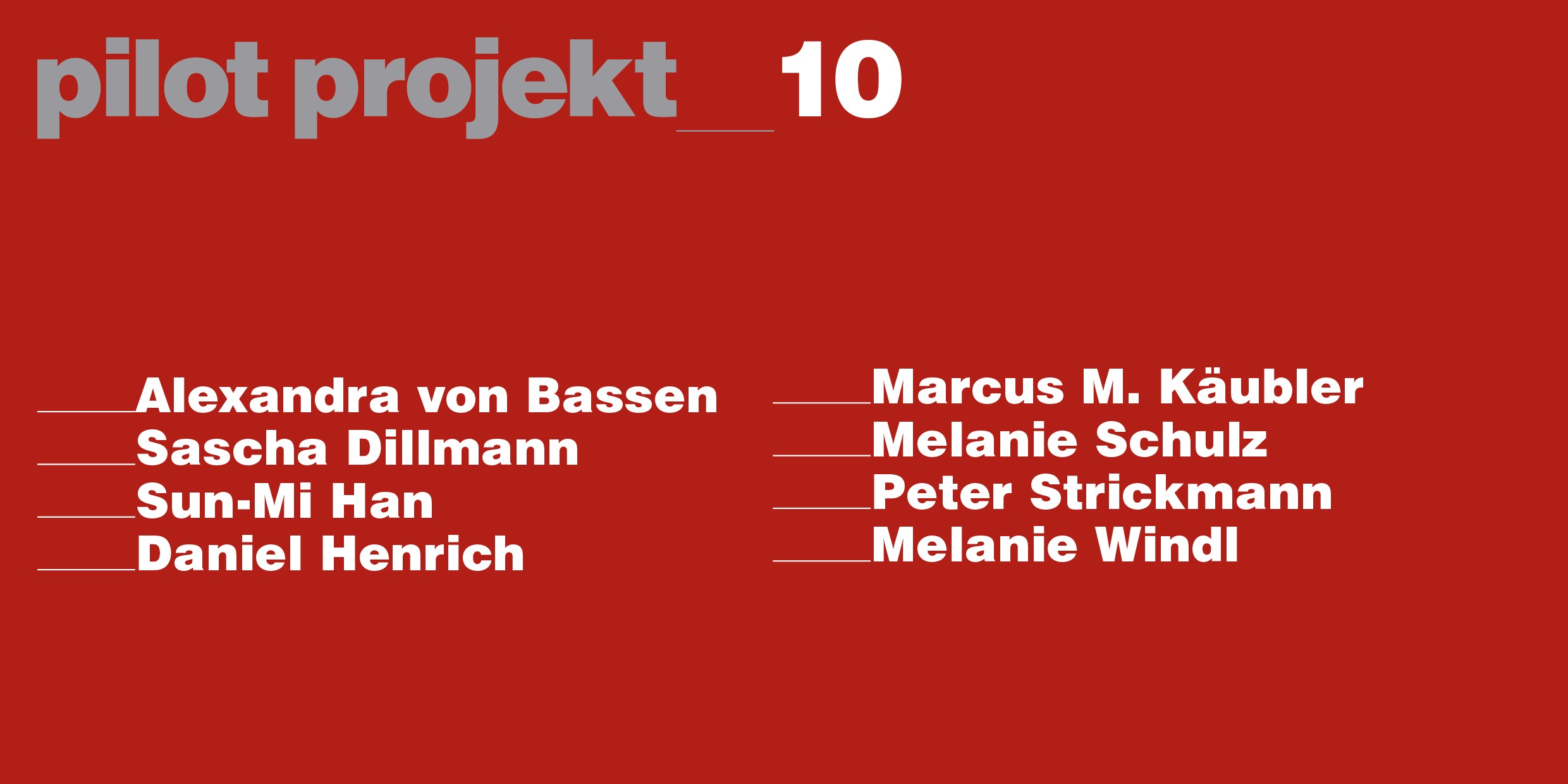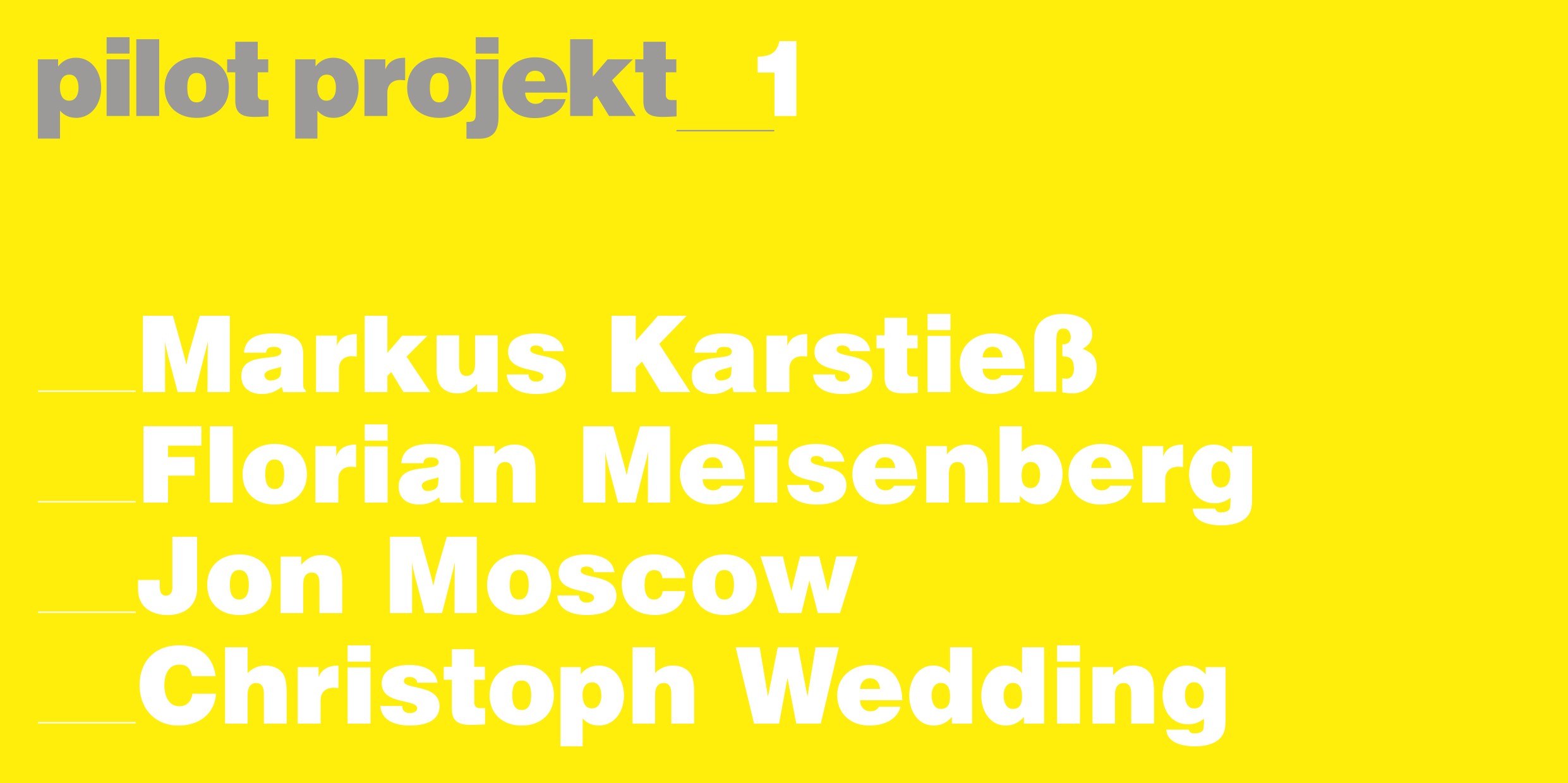 pilot projekt präsentiert ausgewählte Positionen der Gegenwartskunst.Die Ausstellungen werden von Vorträgen, Konzerten, Künstlergesprächen und anderen Formen der Auseinandersetzung begleitet.